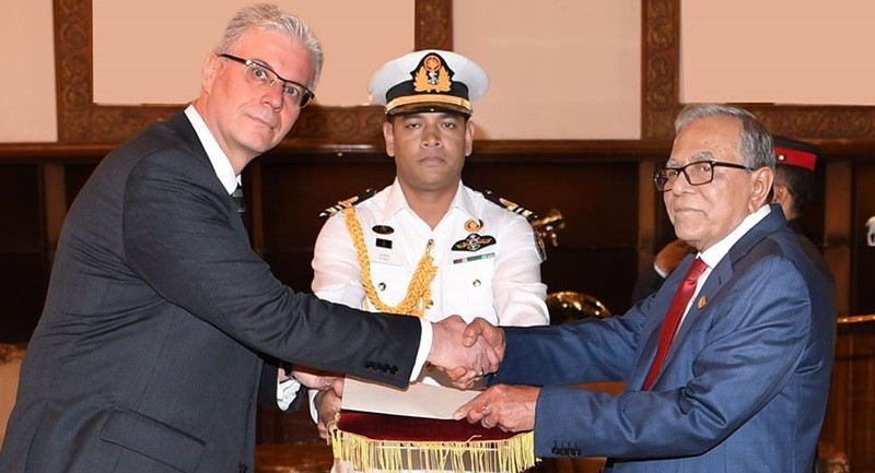 রাষ্ট্রপতি মো. আবদুল হামিদের সাথে বাংলাদেশে নবনিযুক্ত বিশ্বের ৮টি দেশের রাষ্ট্রদূত সাক্ষাৎ করেছেন। এ সময় তারা নিজ নিজ পরিচয়পত্র রাষ্ট্রপতির হাতে তুলে দেন।